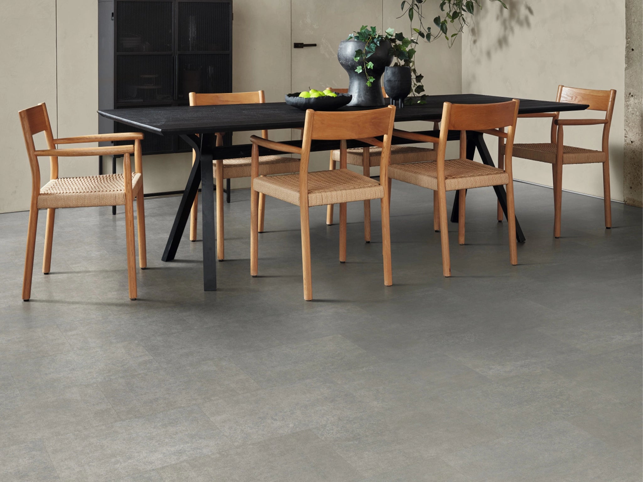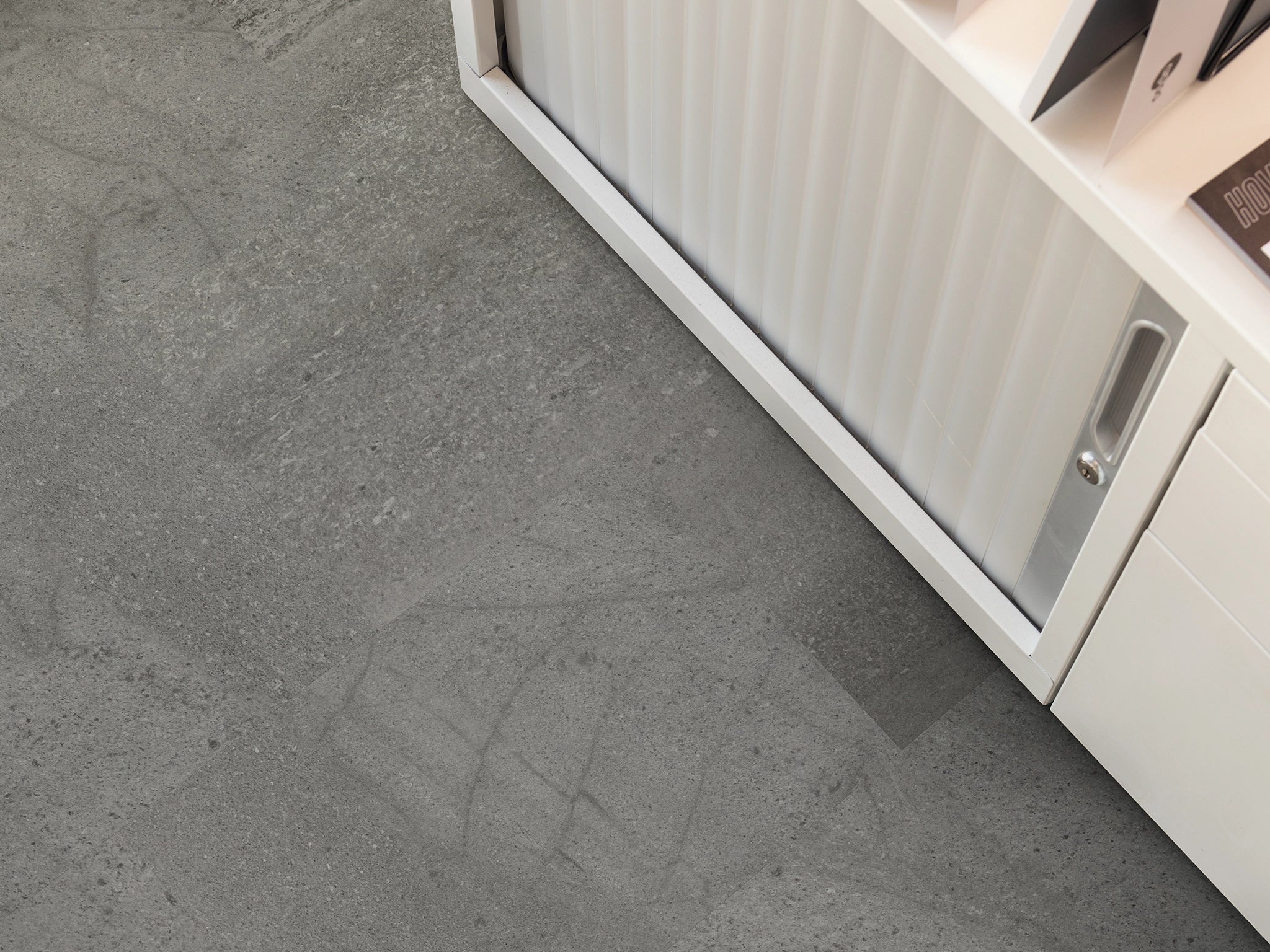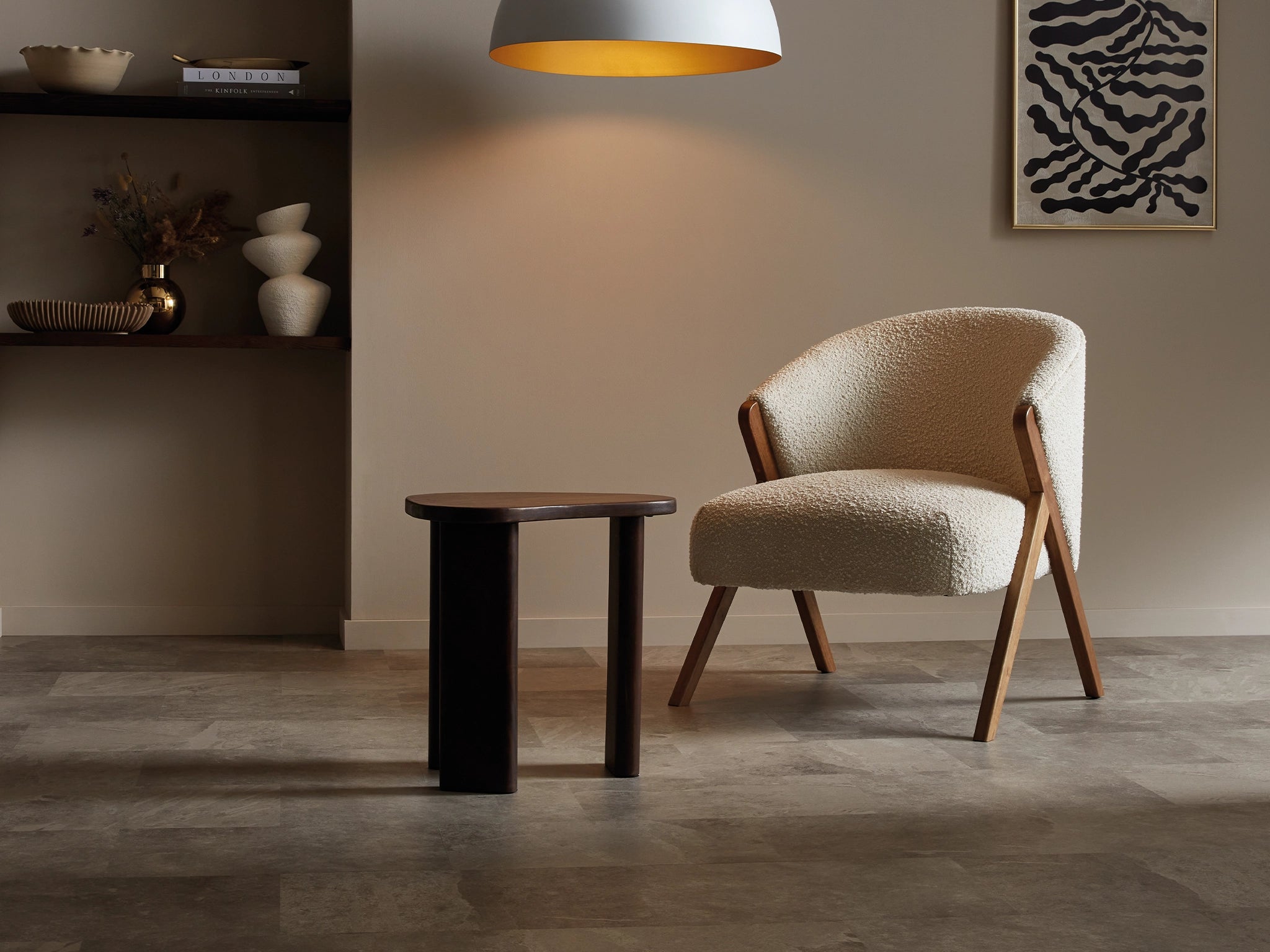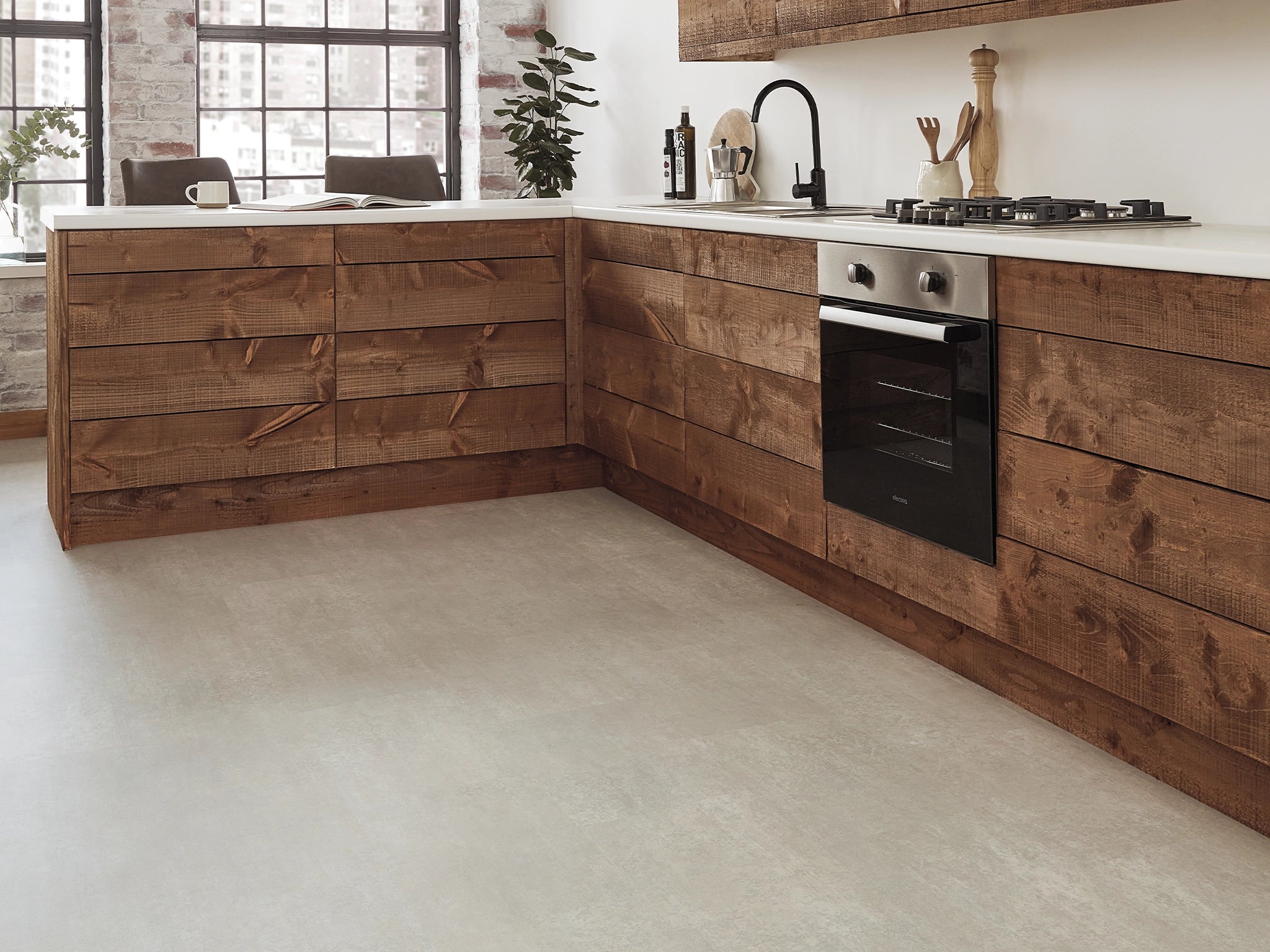 To create this extraordinary neutral design, Karndean sourced volcanic slate by hand, selecting unique pieces of 300-million-year-old stone. They then gave them a smoother surface to let the fabulous fractured details you see now shine through.