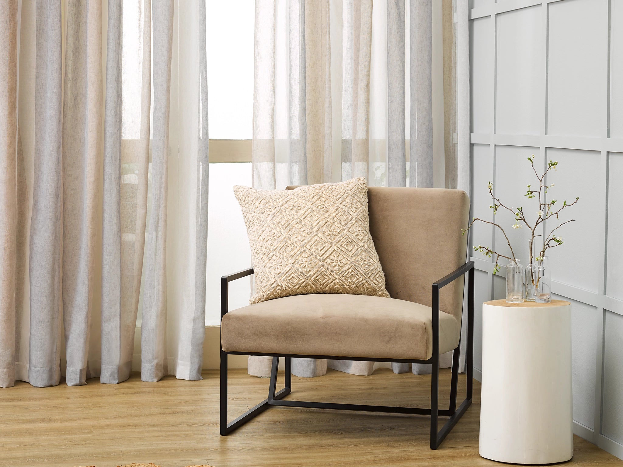 We recommend installing your track at least 10cm above your window, space permitting. This creates the illusion of height in the room as your eye is drawn above the window.